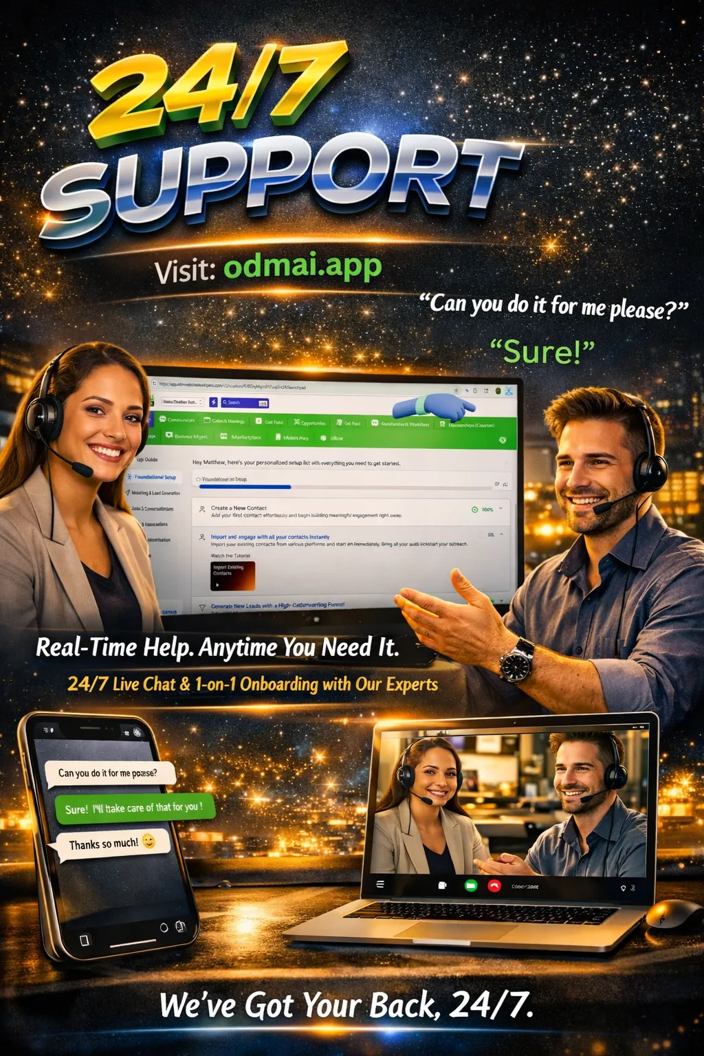 At ODM A.I., we focus on what truly moves the needle for your business. Our “Core Four” ensures that you’re not just online — you’re optimized for growth. We help you connect with leads instantly, automate follow-ups, showcase a high-converting brand, and provide 24/7 human support so you never miss an opportunity.